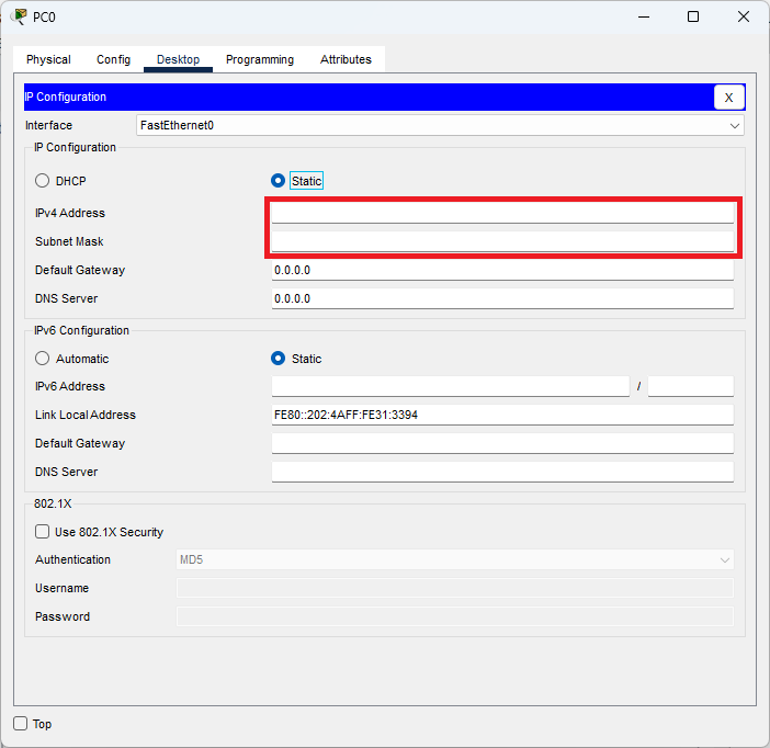 Počítaču v simulátore nastavte rovnakú IP adresu a netmasku ako má váš skutočný počítač.
