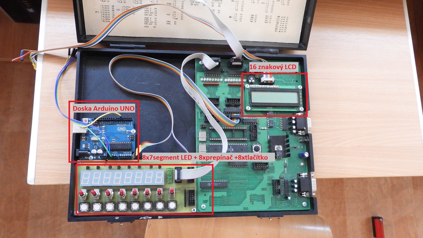 Arduino Uno a základné periférie (LED displej, LCD displej, prepínače, tlačítka).