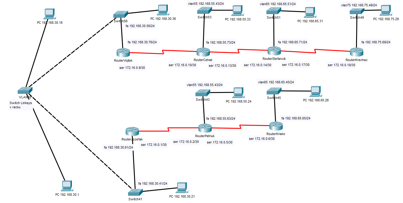 Switch s IP adresou 192.168.65.45 je modernejší model ako ostatné v učebni. Má novšie VLAN možnosti a