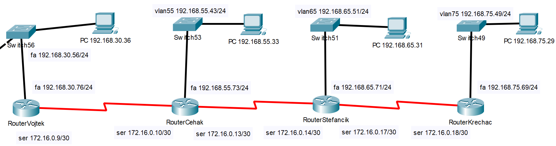 Kde xx je číslo prvého rozhrania v danej VLAN a xy je posledné číslo