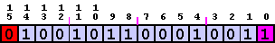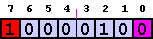 si všimnite že prvý a posledný bit sú farebne zvýraznené. Je to preto že tieto bity majú špeciálne pomenovanie