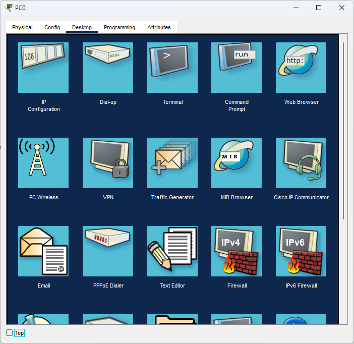 Spustenie programu Cisco paket tracer a prihlásenie sa.