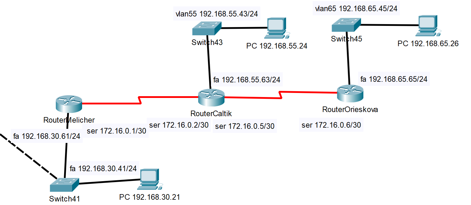 Switch s IP adresou 192.168.65.45 je modernejší model ako ostatné v učebni. Má novšie VLAN možnosti a