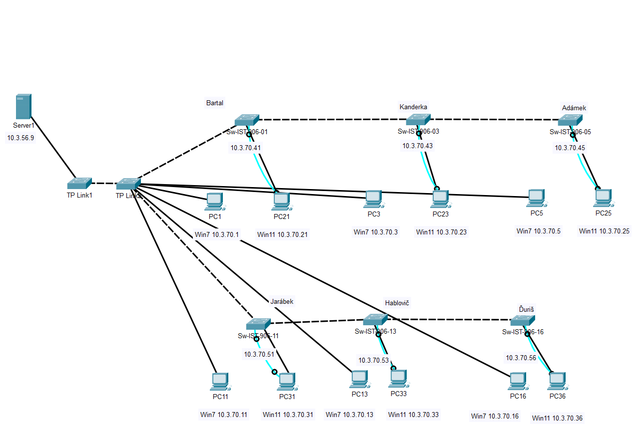 10. Poprepájajte prepínače v učebni podľa obrázka v zadaní
